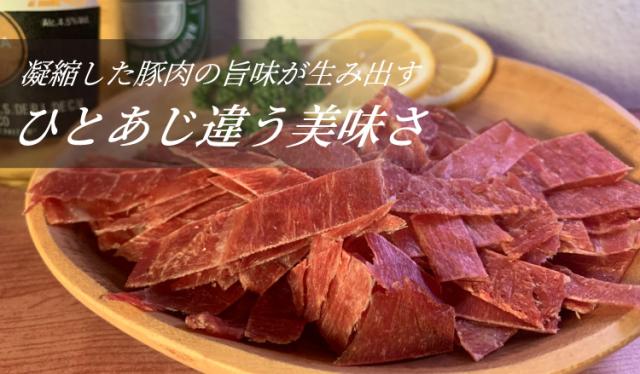 ●歯切れの良い柔らかさで、ビーフジャーキーとは全く違うポークジャーキーです。