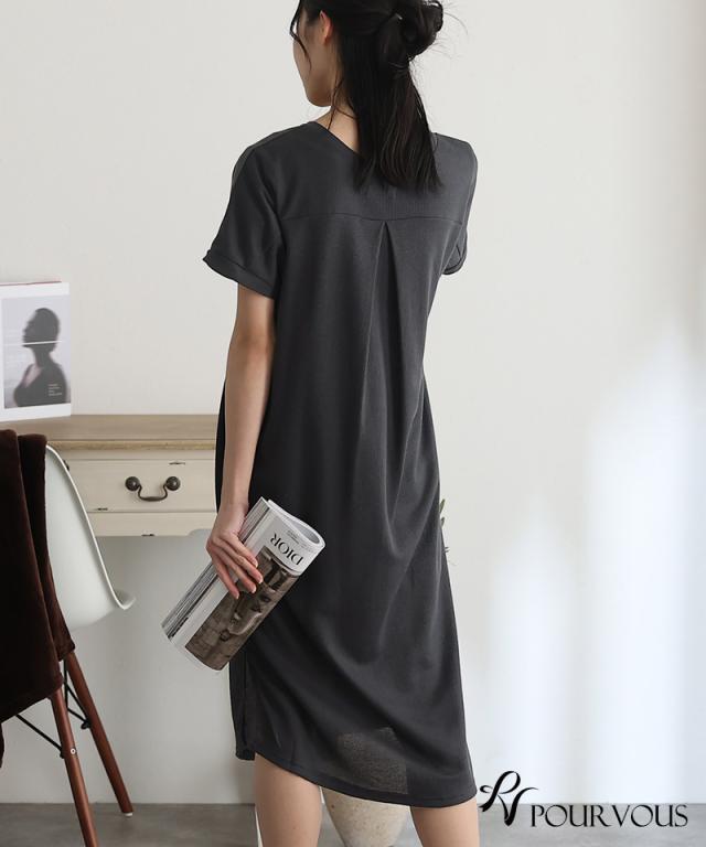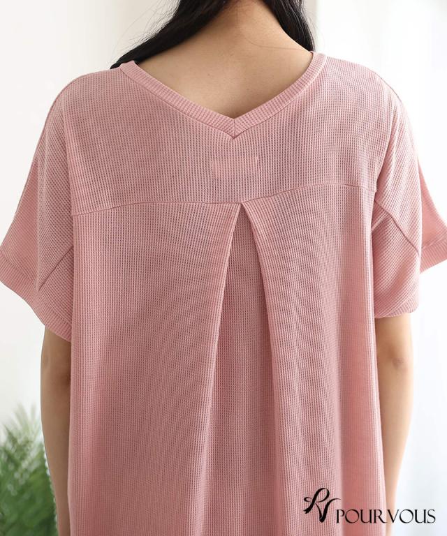 ■ すっきりなフレンチスリーブのワッフルワンピース