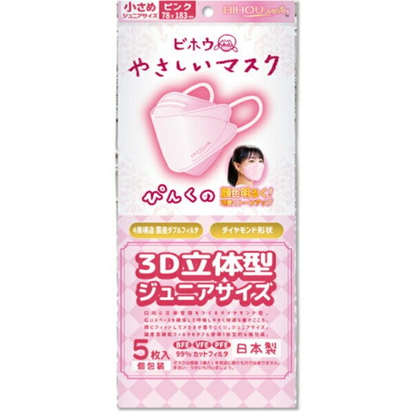 やさしいマスク 3D立体型 ジュニアサイズ ピンク 5枚入り