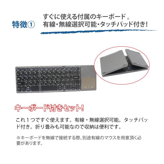★すぐに使えるキーボード付属。有線・無線選択可能、タッチパッド付き!