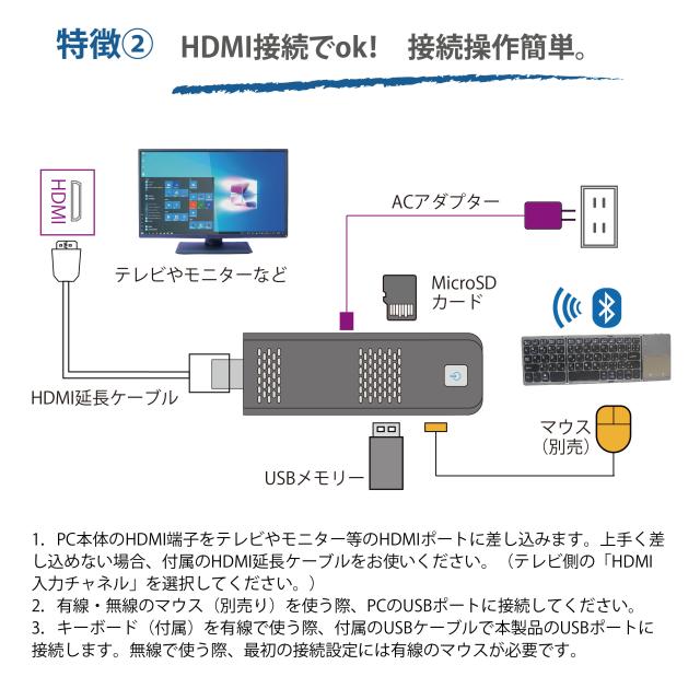 ★ご自宅のテレビやモニターにHDMI接続すればPCに早変わり!※モニターは別売となります。