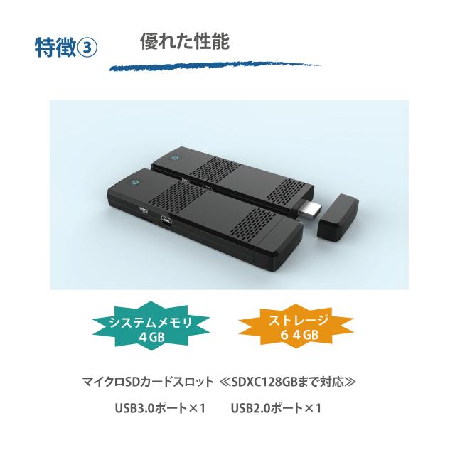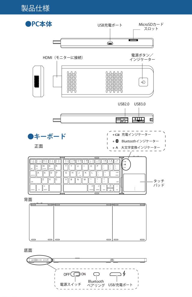 【公式ショップ】 M-WORKS スティックPC パソコン 折り畳みキーボード付 タッチパッド 4GB / 64GB コンパクト 軽量 スティック ミニ PC ミニパソコン USB HDMI 収納ケース 在宅勤務 テレワーク 1年保証