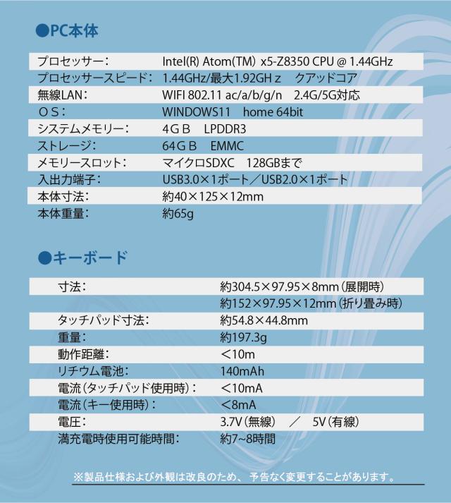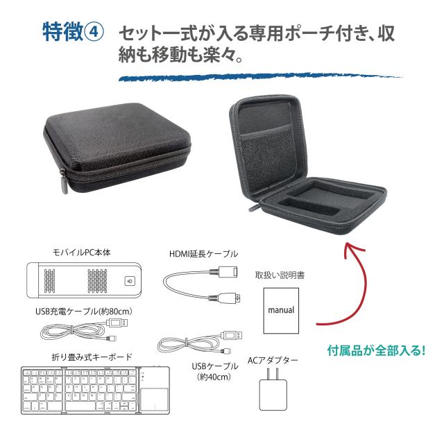 【付属品】ACアダプター、専用ポーチ、キーボード、HDMI延長ケーブル(20cm)、説明書
