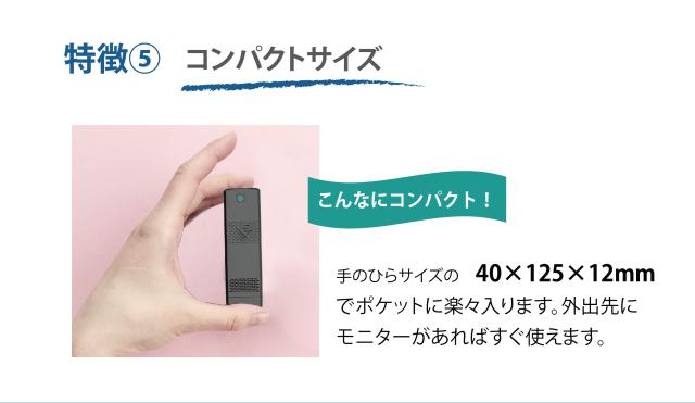 ★手のひらサイズでポケットに楽々入ります。外出先にモニターがあればすぐ使えます。