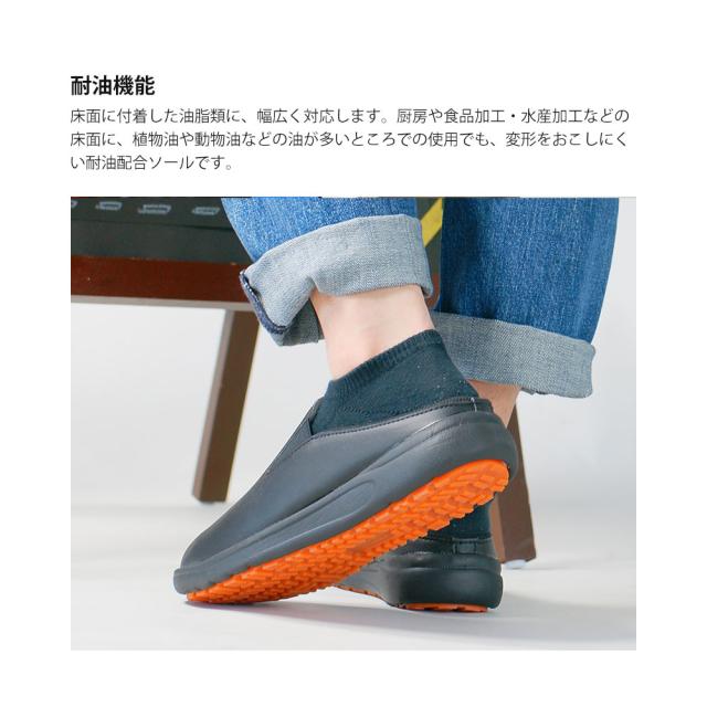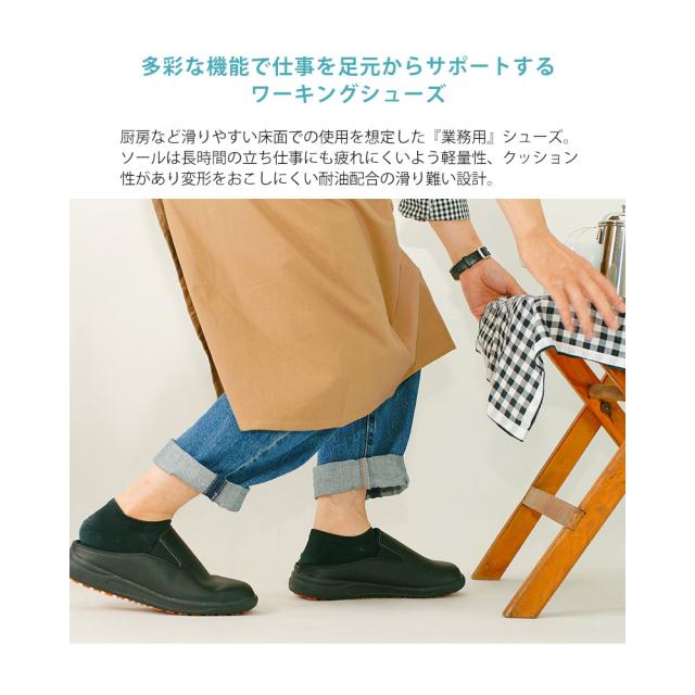 厨房など滑りやすい床面での使用を想定した『業務用』シューズ。