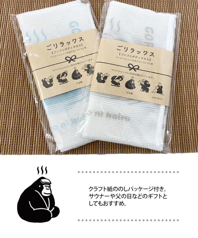 ボディタオル 日本製 固め 吸水 速乾 キャラクター ごリラックス ゴシゴシボディタオル 綿 泡立ち ナイロン サウナ 銭湯 温泉 お風呂 バスグッズ プレゼント ギフト 父の日 ととのい サウナグッズ ゴリラ ごりら 金 銀 ブルー グリーン ベージュ