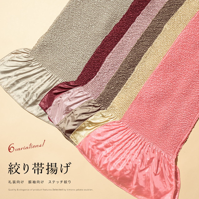帯揚げ 振袖用 振袖 成人式 ステッチ 絞り ステッチ絞り 無地 ピンク 赤 茶色 ベージュ シンプル 女性 和装小物 帯あげ おびあげ メール便 送料無料