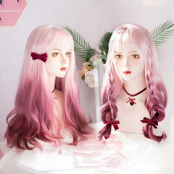 ウィッグ フルウィッグ ピンク パープル ロング ストレート ロングウィッグ ぱっつん前髪 ロリータ 前髪あり グラデーション ハロウィン 原宿風 韓国風 かつら コスプレ 可愛い コスチューム 仮装 大人用 普段使い 文化祭 イベント 学園祭 演劇 舞台 学芸会 dp070x1x1c9