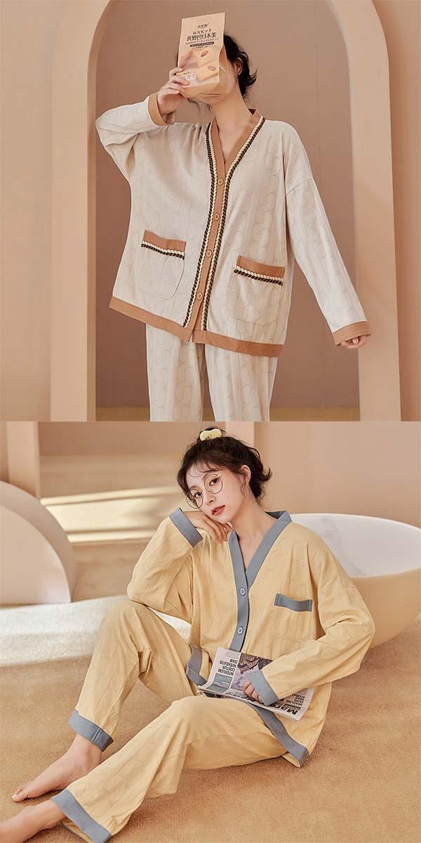パジャマ 夏用 レディース ルームウェア 部屋着 女性用 長袖上着 長ズボン 着心地抜群 爽やか レディースパジャマ かわいい 上下セット セットアップ おうち時間 寝間着 ギフト プレゼント 春 秋 ベージュ dh074n1n1c9