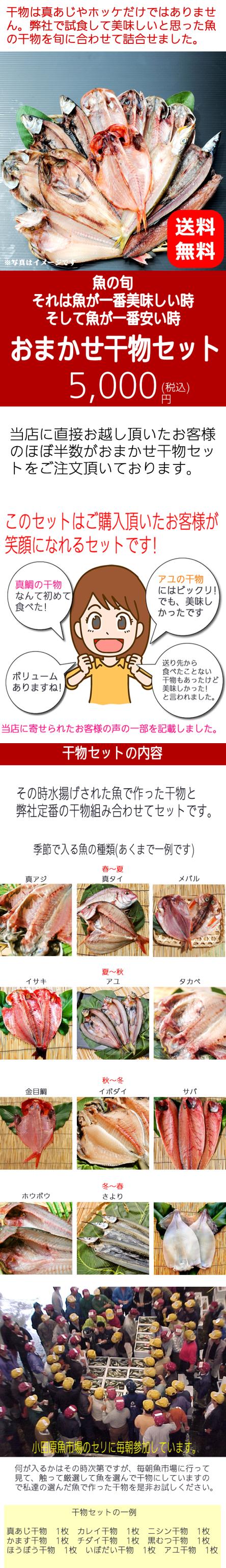| 内容量 | ※あくまで一例です。 水揚げに応じて干物の種類は変わってきます。 その時水揚げされた旬の 美味しい干物が入りますのでご期待下さい!! |