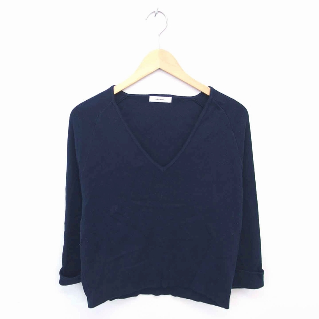 【中古】ニコアンド Niko and.. ニット セーター Vネック ロールアップ ラグランスリーブ 七分袖 ネイビー 紺 /TT31