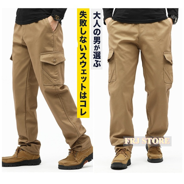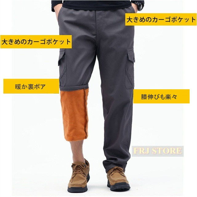 カーゴパンツ メンズ 極暖 裏ボア 裏起毛 暖かい 防風 防寒 ゆったり ロング ウェストゴム ミリタリー イージー ボトムス 作業服 冬