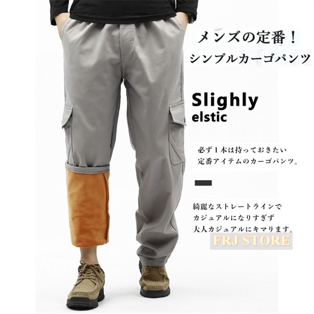 カーゴパンツ メンズ 極暖 裏ボア 裏起毛 暖かい 防風 防寒 ゆったり ロング ウェストゴム ミリタリー イージー ボトムス ストレート 作業 冬