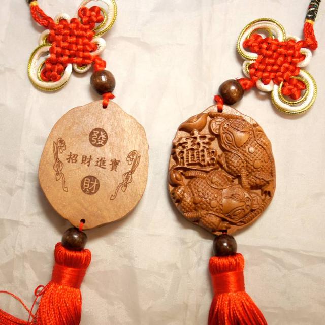 【風水】木彫り金蟾(銭蛙)飾り