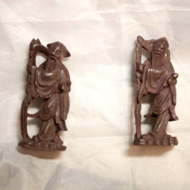 寿老人 木彫り人形 二体セット