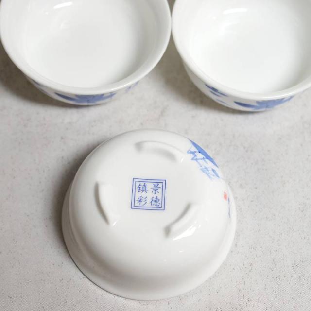 景徳鎮は世界中で有名な陶磁器生産地です。最近では工芸品などがメインで製造されるようになりましたが、以前は大衆向けに食器を良く作り、中国の食器と言えば底に必ず景徳鎮と刻印されていました。本商品は、中国画が描かれている小杯・ぐい飲みです。