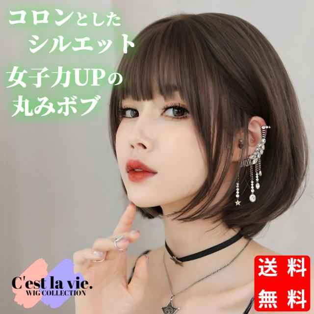 翌日出荷 フルウィッグ 丸み ボブカット アッシュ ブラウン 医療用 かつら ネット付き 自然 小顔