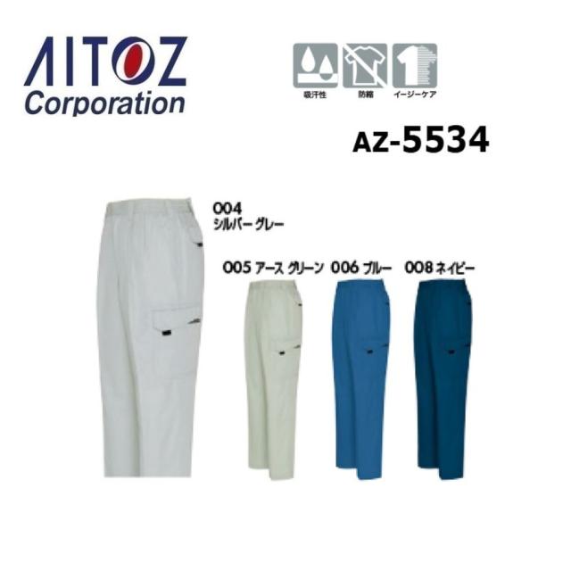 アイトス AZ-5534 シャーリングカーゴパンツ(2タック)(男女兼用) SS〜6L(すそ直しできます)