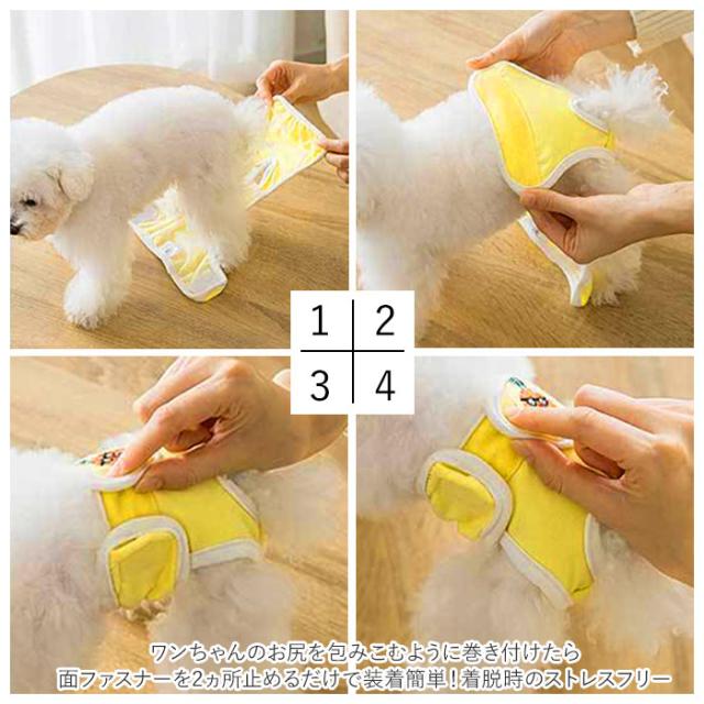 | 商品説明 | ・可愛らしい刺繍がワンポイント!愛犬とのお出掛けに便利なペット用マナーパンツ。 ・ワンちゃんのお尻を包みこむように巻き付けたら、面ファスナーを2ヵ所止めるだけで装着簡単!着脱時のストレスフリー。 ・面ファスナーを貼り付ける位置でサイズ調整も自在! ・尻尾を通す穴付きで、お尻に窮屈さを感じずにフィット感も抜群。活発に動くワンちゃんでも安心。 ・クロッチ部分からお腹部分は通気性のよいメッシュ素材で仕上げ、ムレが気になる季節でも快適なオールシーズン仕様。 ・S・M・Lの3サイズ展開で、小型犬から中型犬までぴったりサイズがチョイス可能♪ ・果物やお花の刺繍モチーフから、ユニークなコーギーのお尻まで、楽しんで選べるカラーバリエーション。 ・ご家庭で手軽に手洗いができるので、洗い替え用に色違いで揃えても◎ |