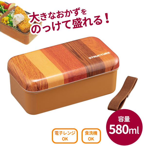 弁当箱 おかずのっけ弁当箱 580ml 木目(ライトブラウン) SLLB6M | ランチボックス 1段 食洗機 OK 電子レンジ OK 日本製 ふわ盛 ドーム型 仕切り 付き 深型 ベルト 付き