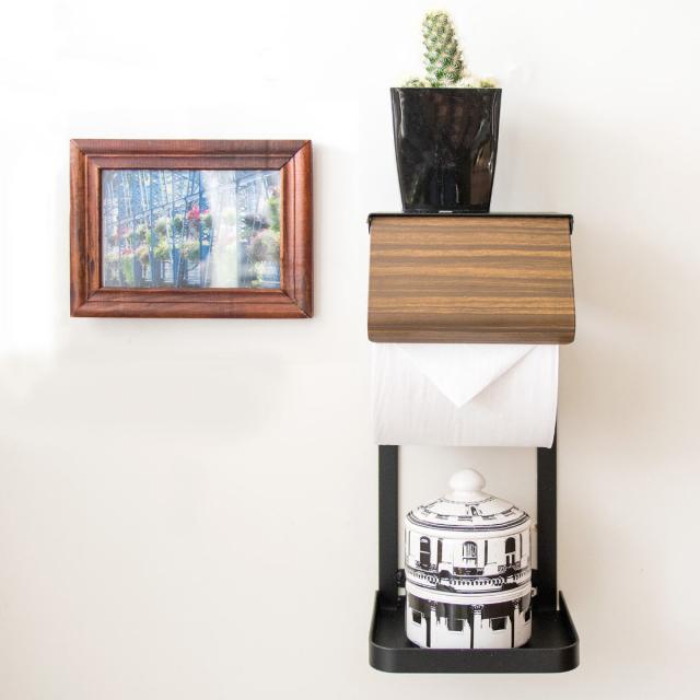 トイレットペーパーホルダー TEER ( トイレットペーパー ホルダー トイレ 収納 トイレ収納 木目調 スリム スチール ペーパーホルダー 小物収納 小物 ストッカー )