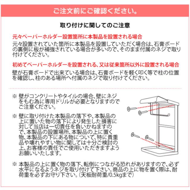 | 備考 | トイレットペーパー対応サイズ:直径10cm以内、芯内径2cm以上 |