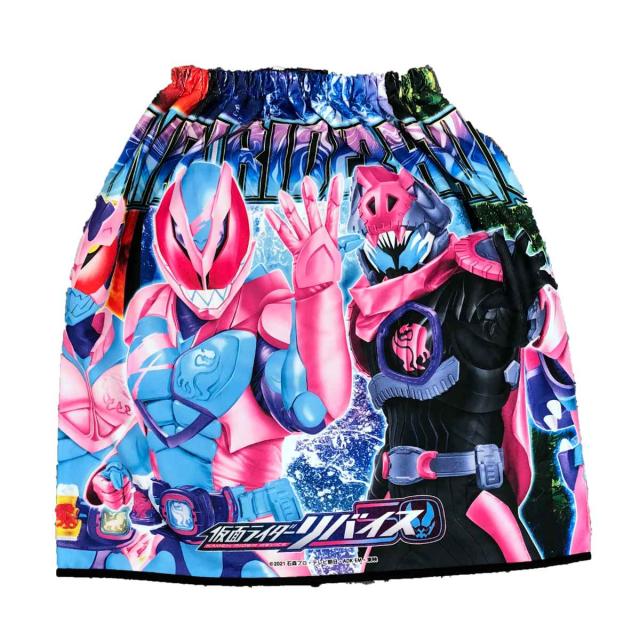 仮面ライダーリバイスのデザインです。柔らかな肌触りと吸水性の高いマイクロファイバーが使用されています。
