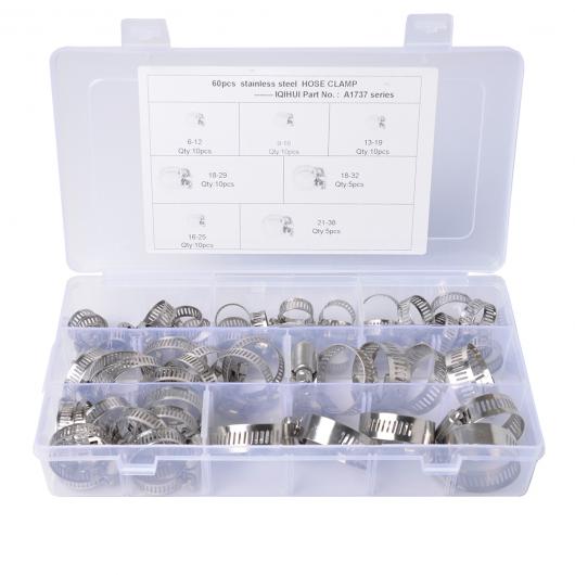 60ピース ステンレス スチール 調整可能 6-38mm レンジ ウォーム ギア ホース クランプ フューエル ライン クランプ AL-OO-4553 AL