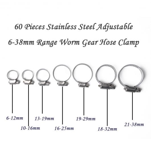 AL 60ピース ステンレス スチール 調整可能 6-38mm レンジ ウォーム ギア ホース クランプ フューエル ライン クランプ AL-OO-4553