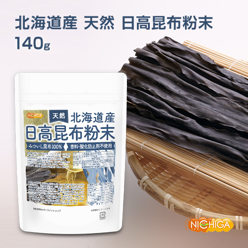 北海道産 天然 日高昆布粉末 140g 【メール便専用品】【送料無料】みついし昆布100% 香料・酸化防止剤不使用 天然調味料 昆布パウダー 昆布粉末 こんぶ だし [04] NICHIGA(ニチガ) 旨味があり素材を引き立て甘味があります