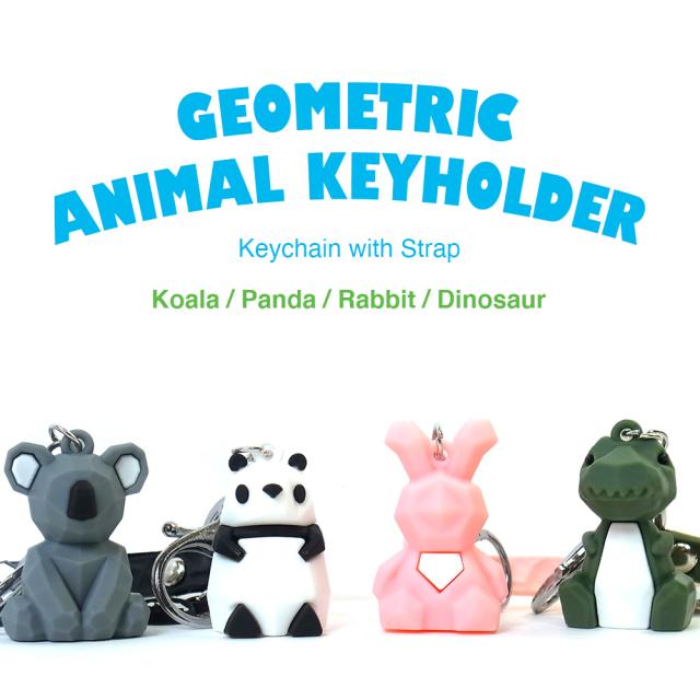 ジオメトリック アニマル キーホルダー ストラップ付き キーリング 動物 コアラ パンダ ウサギ 恐竜