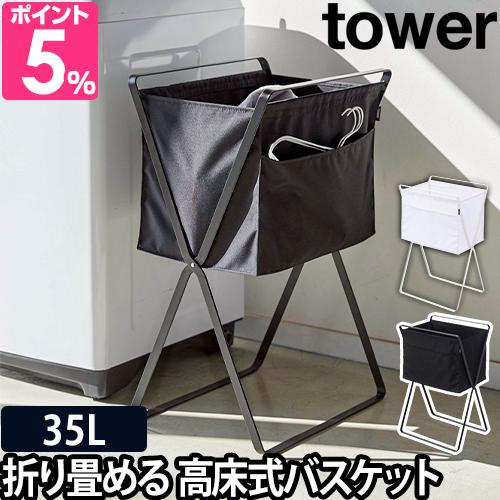 山崎実業 洗濯かご 折りたたみランドリーバスケット 洗濯物入れ ランドリーボックス 折りたたみ オシャレ 持ち手 ランドリー収納 yamazaki タワーシリーズ tower タワー 折り畳み高床式ランドリーバスケット 5661 5662 4903208056618 4903208056625