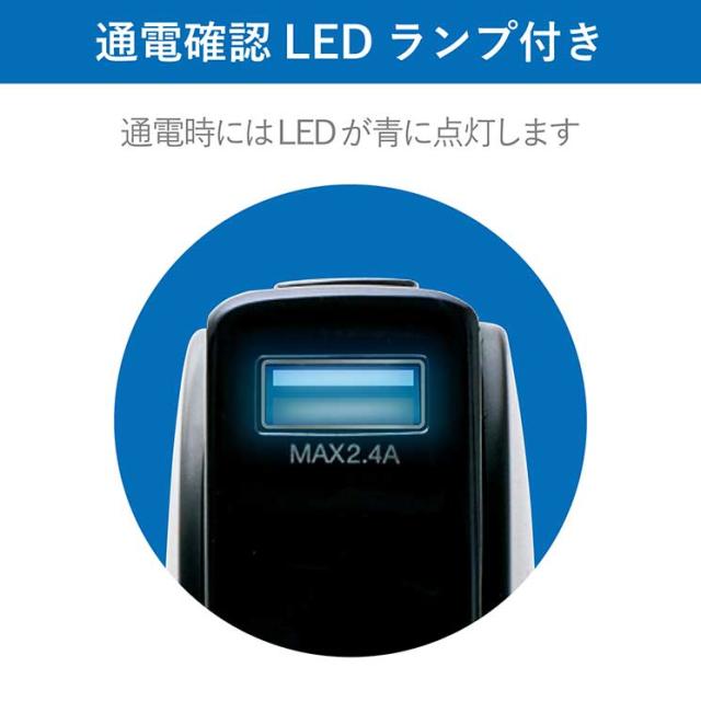USB Type-Cコネクタに対応! 巻取り式のUSB Type-Cコネクタと、おまかせ充電に対応したUSBポートを搭載し、合計最大出力5.4Aの高出力でスマートフォンやタブレット2台を同時に充電できる車載充電器。■対応機種:USB Type-C(USB-C)コネクタまたはUSB Aポートから合計最大5V/5.4Aまでの出力で充電可能な機器 ■使用電源:アクセサリソケット ■コネクタ形状:USB Type-C(USB-C)コネクタ(オス) ■定格入力電圧:DC12V/24V ■定格出力電圧:DC5V ■定格出力電流:合計最大出力5.4A ■外形寸法:幅32×奥行111×高さ57mm(突起部含まず) ■質量:約70g ■ケーブル仕様:巻き取り式ケーブル ■ケーブル長:約90cm ■対応ソケットサイズ:Φ20.8mm〜Φ22.0mm ■カラー:ブラック ■発光色:ブルー ■認証:認証USB Type-C(USB-C)端子使用 ■保証期間:12ヵ月 ■使用可能地域:日本 ■その他:USBポートにはおまかせ充電搭載