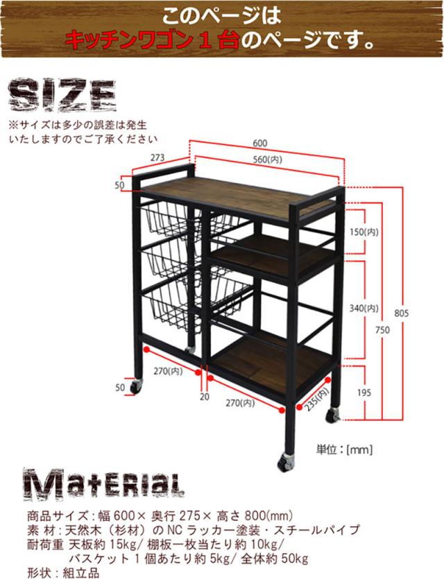 天板:約15kg/棚板:約10kg(1枚)/バスケット:約5kg(1個)=全体約50kg