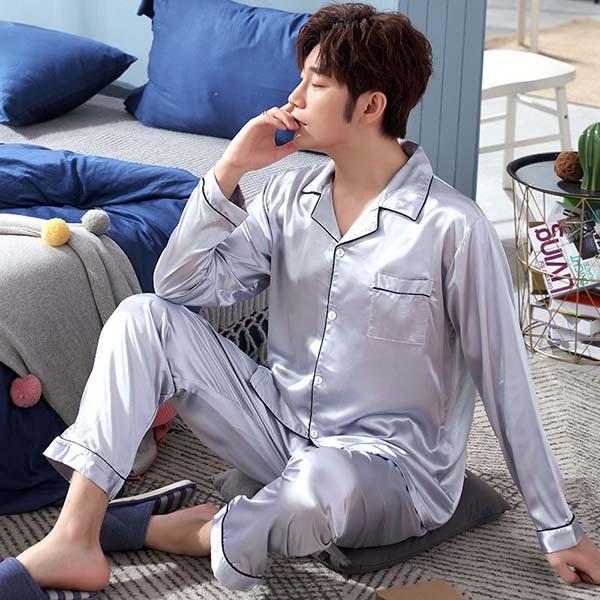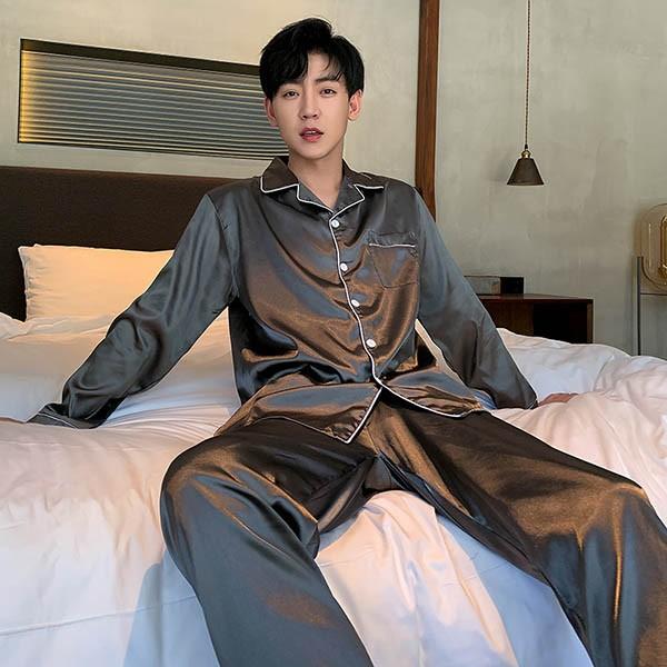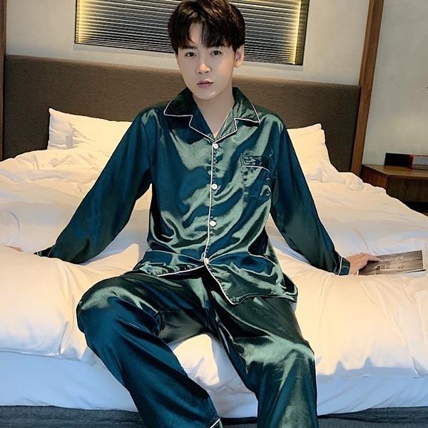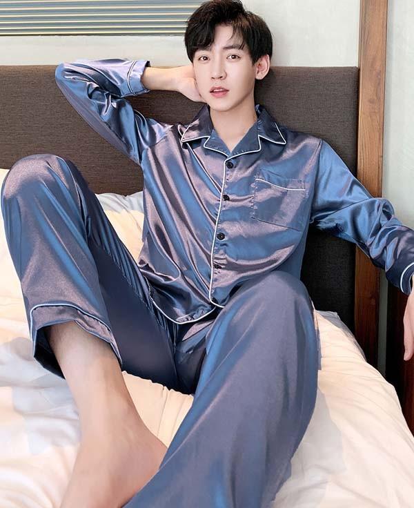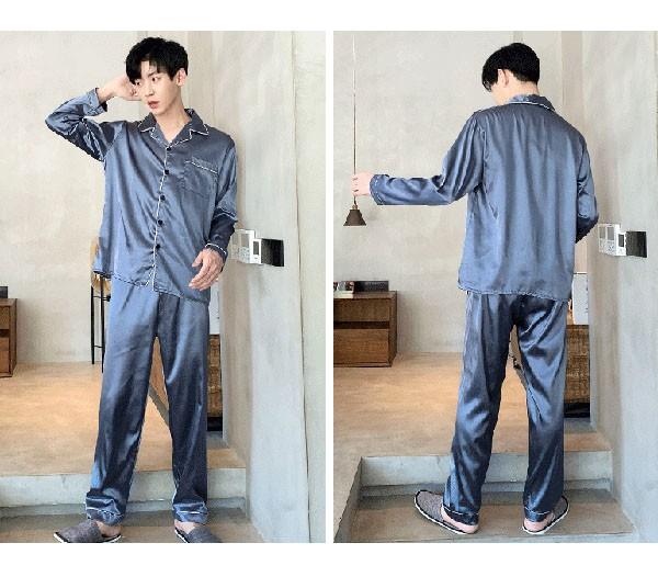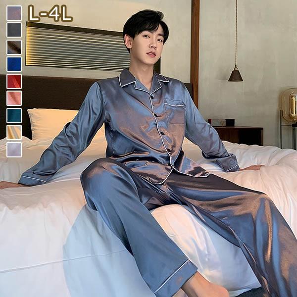 パジャマ 夏用 メンズ ルームウェア 部屋着 男性用 長袖シャツ 長ズボン 着心地抜群 涼しい 爽やか メンズパジャマ 上下セット セットアップ おうち時間 寝間着 父の日 ギフト プレゼント 紺色 紺 ブルー 春 秋 dh060n1n1c9