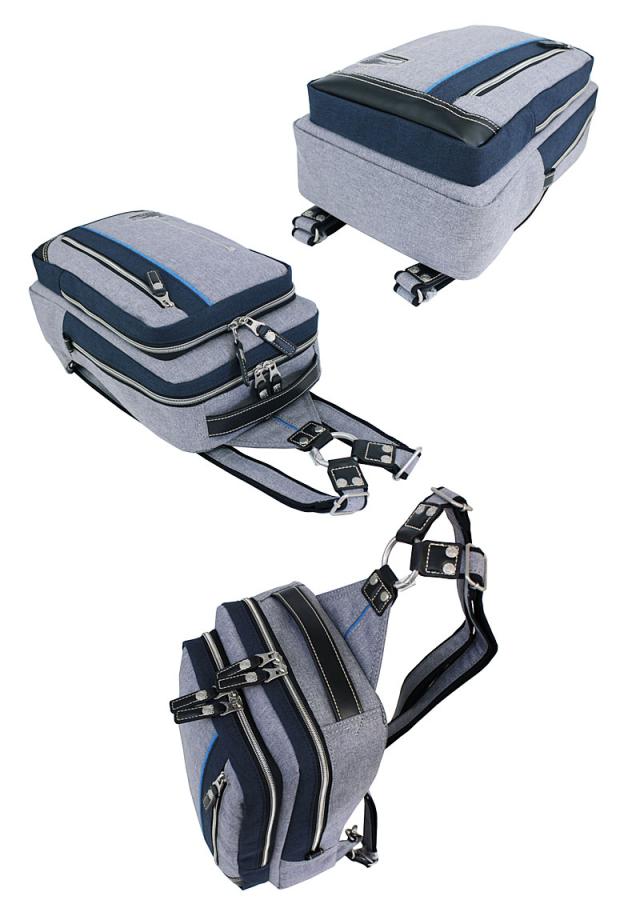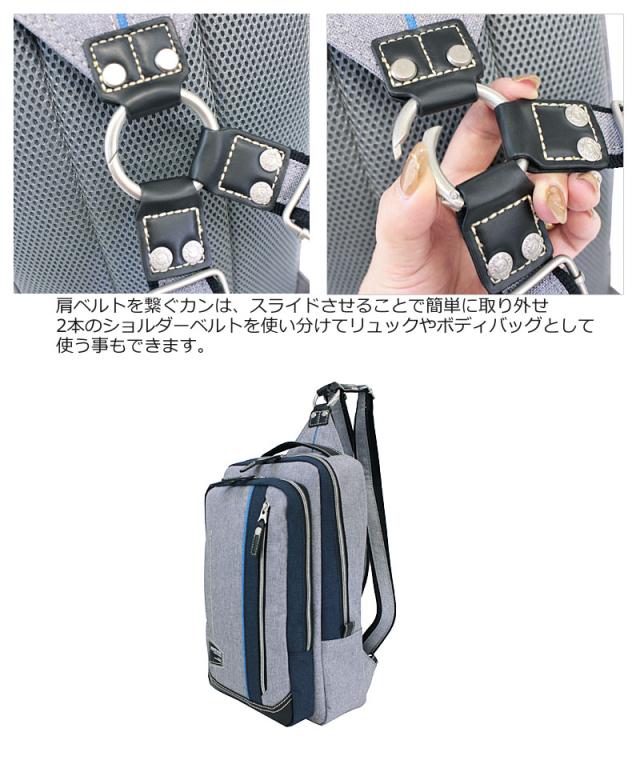 2本のショルダーベルトを使い分けてリュックとして使う事もできる、大きめボディバックです。