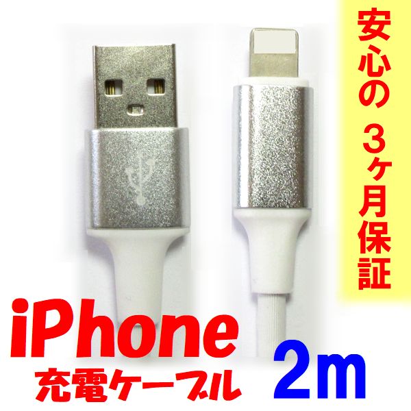 充電ケーブル 2m iPhone用/USB type-A データ転送可 急速充電 2A ネコポス送料無料