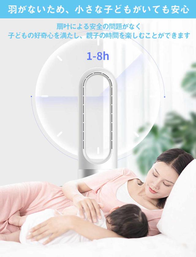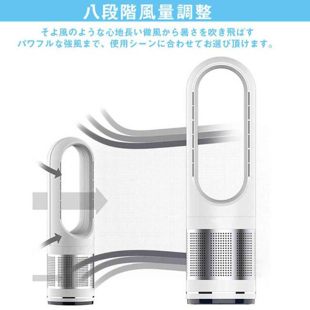 新型【夏冬兼用】羽なし扇風機 1台2役 冬も使えます 自動首振り ファンヒーター 小型 8段階風量調節 温風冷風 タワ-ファン リモコン付き 静音 省エネ 安全 熱中症対策 暑さ対策 暖房器具 母の日 父の日 プレゼント