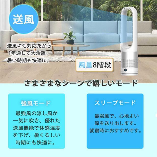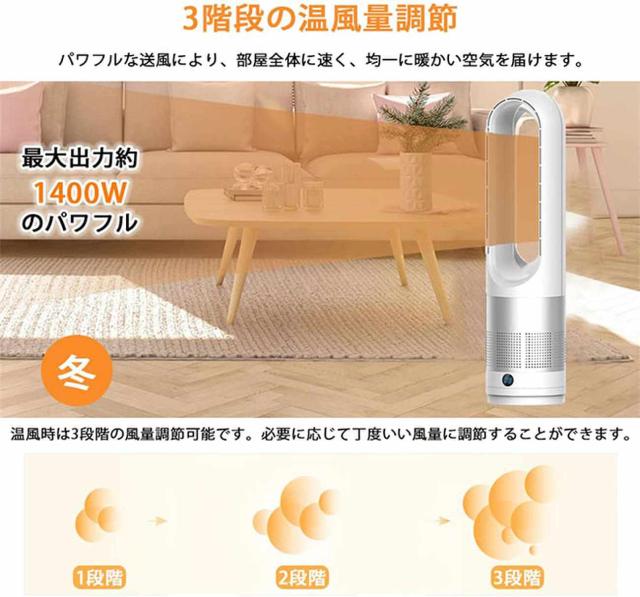 - 以前から気になっていた一年中使用出来る羽根なしタイプ。大風量で狭い部屋だとすぐ暖まる。購入して良かった。