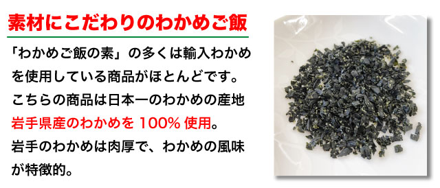 「国産わかめ」を使用した「わかめご飯」が少ない中、「岩手産わかめ」にこだわり製造した商品です。