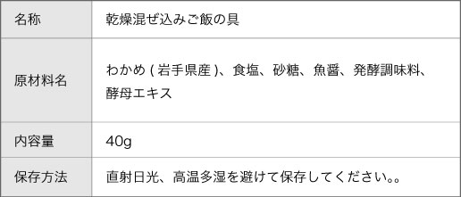 【原材料名】わかめ(岩手県産)、食塩、砂糖、魚醤、発酵調味料、 酵母エキス