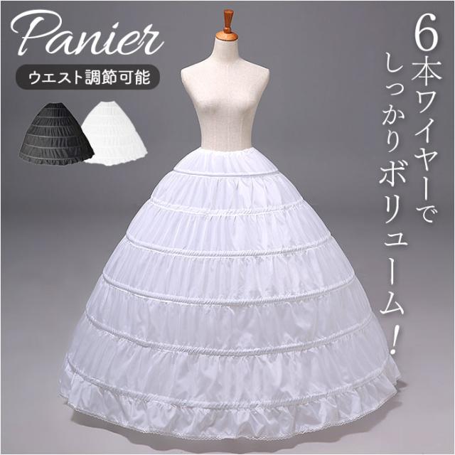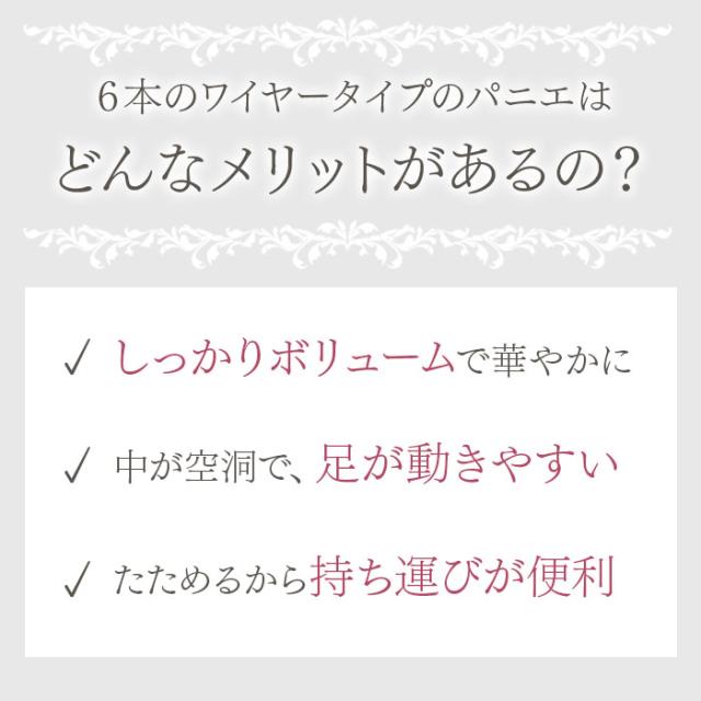 パニエ 大人 通販 ワイヤーパニエ ワイヤー 6本 ロング 大人用 ウエディングドレス ロングドレス 6段パニエ ボリューム ハードチュール ブライダル ウエディング プリンセスライン