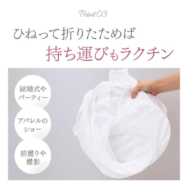 | 商品説明 | ・ウェディングドレスやパーティー用ドレスのボリュームアップに♪大人用のワイヤーパニエ(6段タイプ)が発売。 6本のワイヤーでドレスにボリューム感をプラス! ・ふんわり膨らみ、足元に空間ができるから歩きやすい◎ ・ウエストの紐でサイズ調整が可能。 ・ひねって折りたためば持ち運びもラクチン。 ・プリンセスラインやボリューム感を出したいAラインドレスにぴったり♪ |