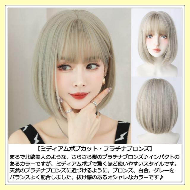 翌日出荷 フルウィッグ ミディアム ボブ プラチナ ブロンズ 医療用 かつら ネット付き 自然 小顔
