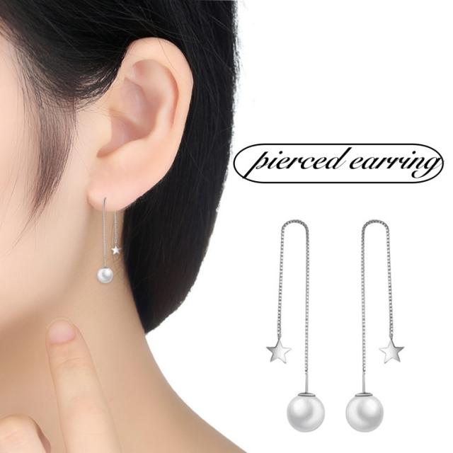 ピアス アメリカンピアス ロングピアス チェーンピアス レディース 女性 アクセサリー 揺れる パール調 フェイクパール スター