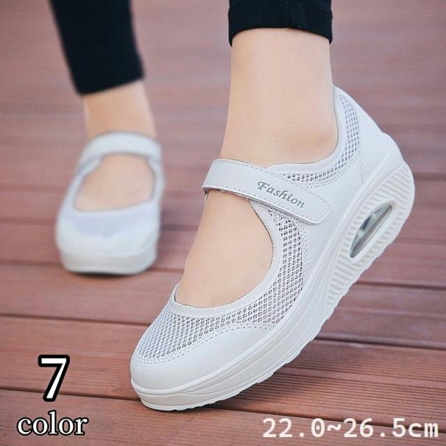 スニーカー レディース 婦人用 女性用 靴 通気性 メッシュ 無地 ストラップ マジック テープ 紐なし ウォーキングシューズ
