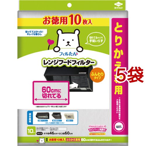 フィルたん とりかえ専用 60cmにきれてるふんわりフィルター(10枚入*5袋セット)[汚れ防止グッズ]