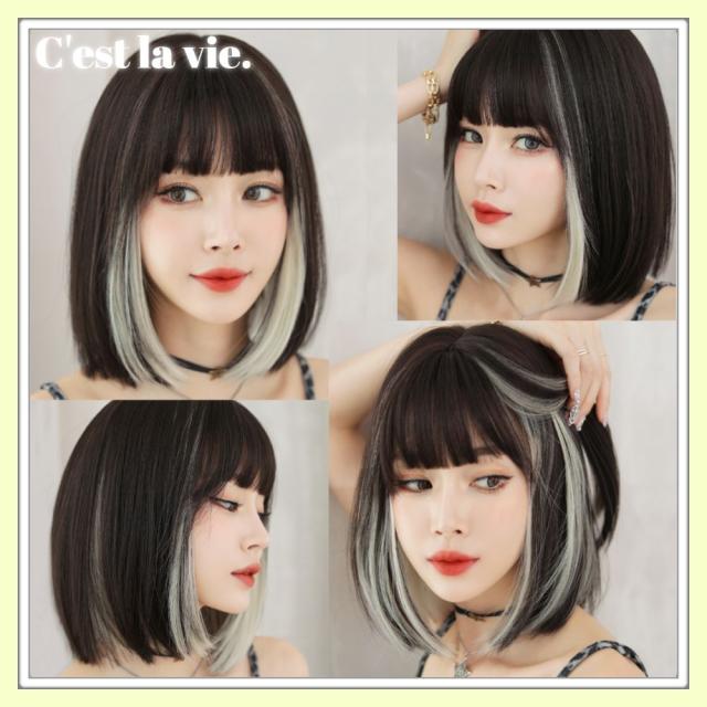 翌日出荷 フルウィッグ ミディアム ボブ インナーカラー ブロンズ 医療用 かつら ネット付き 自然 小顔