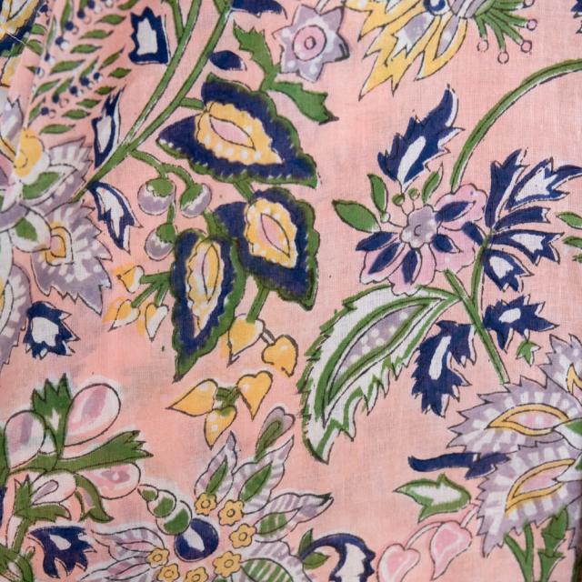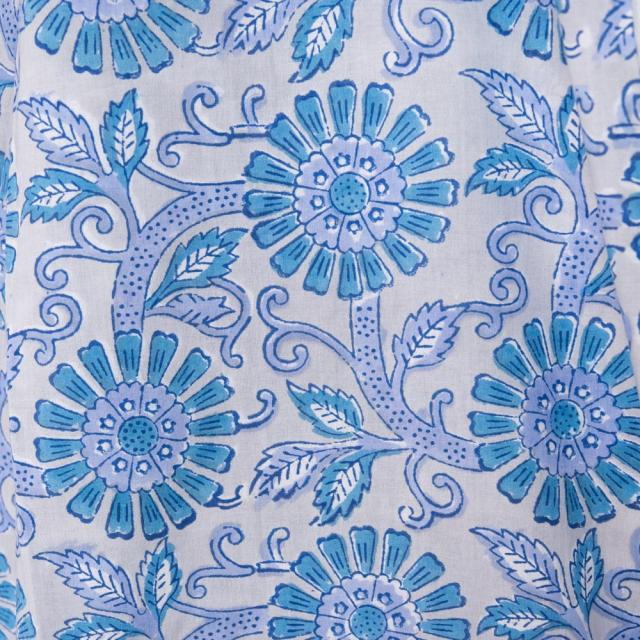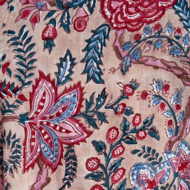 インドのラジャスタン州ジャイプルで古くから継承されて木版染め。デザインを考え、木を彫り、スタンプのように布に押していく。その工程は全て手作業で行われており、色が変わるたびに版を交換するため非常に時間のかかる丁寧な手仕事の賜物といえます。そんな布を使用したシャツは非常に贅沢な一品です。全てハンドメイドのため、独特のムラがあり工業製品にはない温かみを感じることができます。