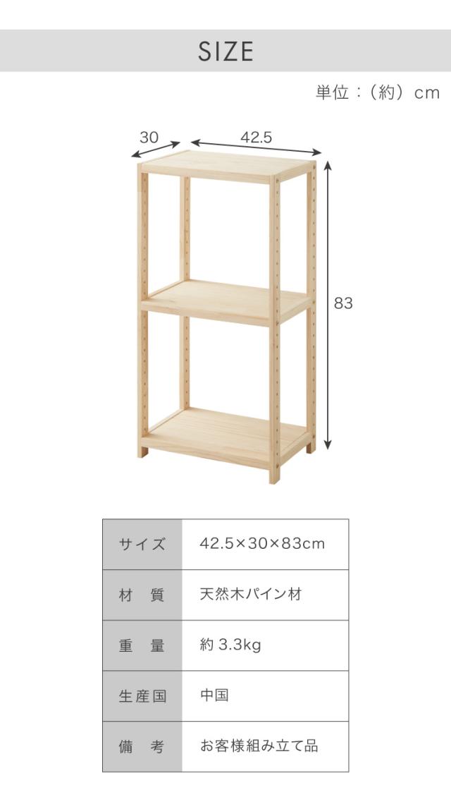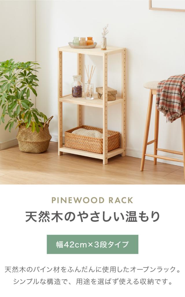 天然木 パインラック 3段 幅42.5 オープンラック 三段 おしゃれ 木目 木製 収納 パイン材 シェルフ 奥行き30 高さ83 北欧 ラック 木目調(代引不可)【送料無料】
